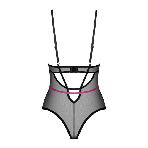 Боді напівпрозоре чорного кольору з рожевими вставками Obsessive Novenes розміри XL/2XL