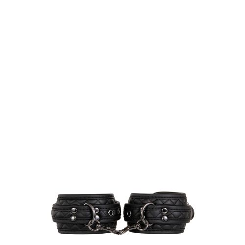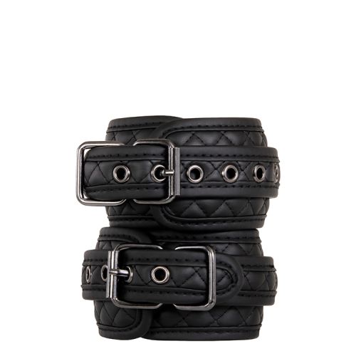 - Манжети, комір, пов'язка на очі та лопатка з м'якої веганської шкіри з ромбоподібним простроченням.