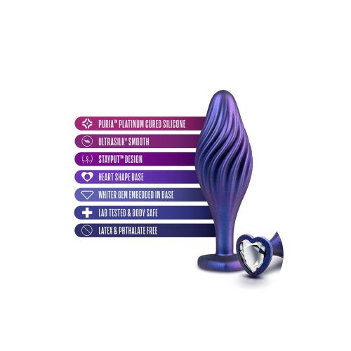 Анальна пробка рельєфна фіолетова із сріблястим камінчиком у формі серця Blush Anal Adventures Matrix
