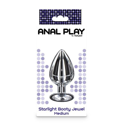 Анальна пробка металева з камінцем сріблястого кольору Toy Joy Starlight Booty розмір Medium