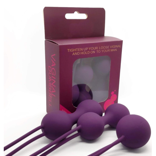 Тренажер Кегеля – набір вагінальних кульок для зміцнення інтимних м'язів (3 шт) Vagina Dumbbell Violet. На відміну від багатьох інших тренажерів Кегеля, набір вагінальних кульок Vagina Dumbbell розроблений у вигляді триступеневої системи з трьох вагінальних кульок різної ваги (56г, 61г, 102г), які допоможуть пройти повний цикл тренувань від початкового рівня до більш просунутого. Вправи з вагінальними кульками відновлюють тонус, зміцнюють та підтягують м'язи тазового дна (інтимні м'язи). Під час тренувань підвищується мікроциркуляція крові в ділянці малого тазу (профілактика застою крові). Вправи Кегеля допомагають впоратися зі стресовим нетриманням сечі, кашлі, чханні або бігу. Тренування допомагають підготуватися до пологів чи відновитися після них. Як результат вправ з кульками Кегеля – підвищується чутливість інтимної зони під час сексу з проникненням, оргазм досягається легше, стає інтенсивнішим. Тренувальні кульки з гантелями ідеально підходять для початківців та досвідчених користувачів. 100% водонепроникність, легко чистити. Всього 15–30 хвилин на день і 30 днів, щоб ви та ваш партнер помітили різницю. - вага - 56 г/61 г/102 г - діаметр - 35 мм/30 мм/28 мм - довжина - 160 мм - колір фіолетовий
