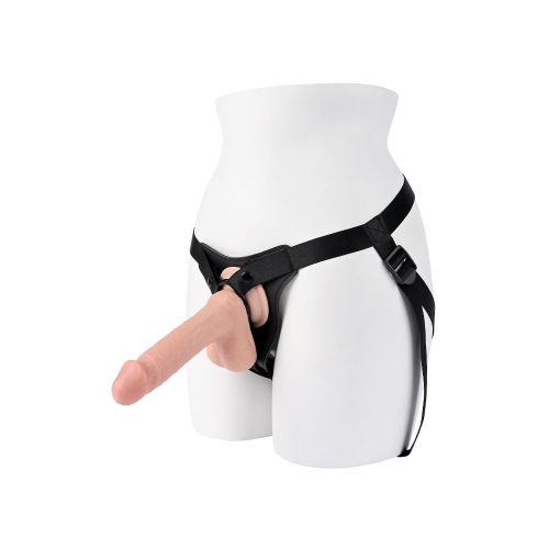 Кільце для кріплення дилдо фіксується трьома заклепками, що гарантує стабільність та безпеку у використанні. У комплект входить вібратор на палець, що додає ще більше варіантів стимуляції. Водонепроникне виконання дозволяє використовувати аксесуар у різних умовах, а матеріали, що застосовуються, забезпечують міцність і простоту в догляді.