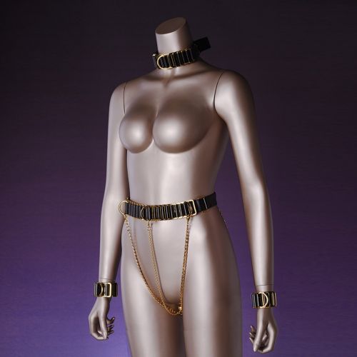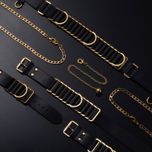 Відкрийте собі незвичайний набір, що складається з трьох елементів - нашийника, ременя і манжетів, які можна використовувати окремо, але разом вони створюють шикарний і дорогий образ.