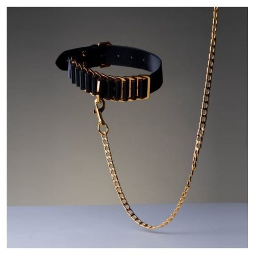 Чокер створює неповторний візерунок завдяки використанню золотих пряжок та розкішної італійської шкіри. До нашийника можна прикріпити повідець, щоб зробити все це ще більше на кшталт БДСМ.
