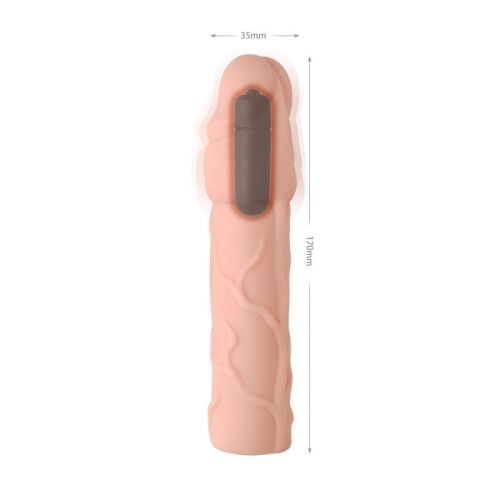 Подовжуюча вібронасадка на член реалістична тілесного кольору Vscnovelty Fantastic Vibrating Penis Extenders