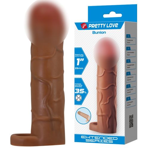 Подовжуюча насадка презерватив на член реалістична з петлею коричнева Lybaile Pretty Love Bunion 1