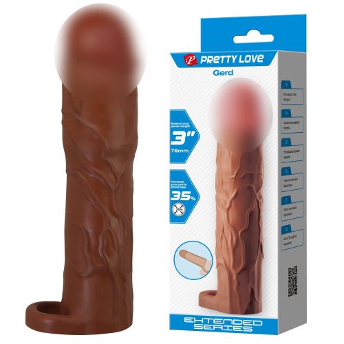 Продовжуюча насадка на презерватив реалістична з петлею коричневого кольору Lybaile Pretty Love Gerd 3