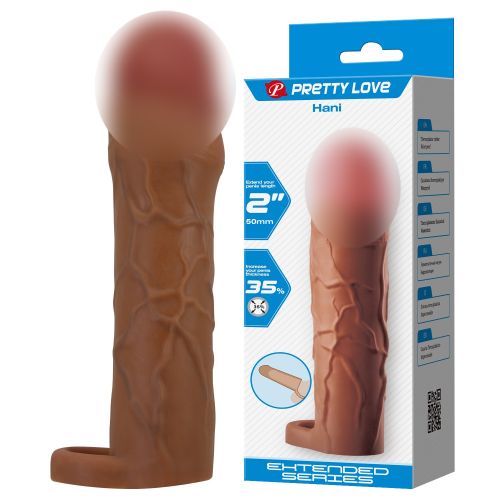 Подовжуюча насадка презерватив на член реалістична з петлею коричнева Lybaile Pretty Love Hani 2