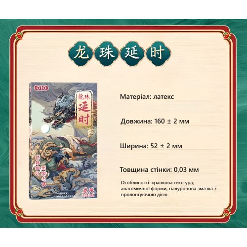 Ультратонкі анатомічні презервативи з гіалуроновою кислотою пролонгуючим ефектом і точковою текстурою OLO Dragon Ball Delay 10 штук