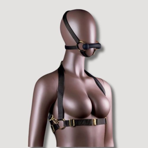 Комплект Поні для рольових ігор портупея та упряж з кляпом чорного кольору UPKO