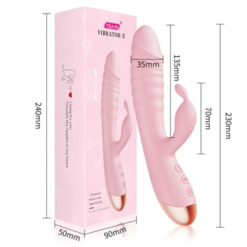 Вібромасажер який задовольнить усі ваші потреби, навіть найтаємніші. Має унікальну функцію фрикції, яка імітує статевий акт рухами вперед-назад. Потужний і приємний вібратор кролик стане справжнім улюбленцем, приносячи безліч оргазмів! Зроблений з медичного силікону у рожевому ніжному кольорі. Сильні два мотори працюють незалежно один від одного. Вагінальна головка що рухається вперед-назад дає можливість управляти на п'яти різних режимах швидкості, а кліторальний відросток має 10 режимів вібрації. Головка м'яка, рельєфна, реалістична для посиленої стимуляції піхви, а відросток у формі голівки з еластичний хвостиком, точно прилягає до клітора. Вібратор перезаряджається через usb-зарядку, яка йде в комплекті. Тихий і потужний, зручний у використанні та догляді. На корпусі іграшки розташовано три кнопки. Щоб увімкнути, натисніть нижню кнопку на 4 секунди індикатор. Далі клацніть на верхню або середню кнопку для вибору потрібної інтенсивності. Щоб вимкнути, натисніть нижню кнопку на 5 секунд. Використовуйте з лубрикантом на водній основі, а перед та після використання обробляйте спреєм для секс-іграшок. Матеріал силікон Колір рожевий Вібрація: 5 режимів фрикції, 10 режимів вібрації Загальна довжина 22 см Довжина робочої головки 130 мм Діаметр головки 40 мм Довжина відростка 80 мм Діаметр 25 мм Зарядка USB в комплекті Упаковка коробка (коробка може відрізнятися кольором)