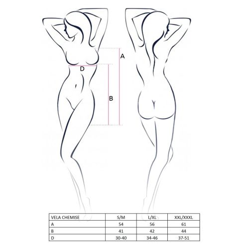 Ніжний і одночасно зухвалий сексуальний комплект-жіноча еротична сорочка Passion VELA CHEMISE чорна плюс стрінги, в першу чергу, полонить своїм багато декорованим класичним ліфом і прозорою тканиною. Ажур і мереживне обрамлення, в поєднанні з підтримуючими кісточками, робить чарівну груди ключовою домінантою всього образу.