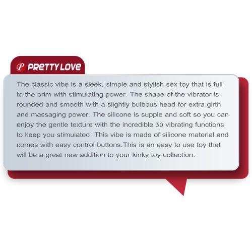 Вібратор Pretty Love Charles поєднує класичну форму та потужну стимуляцію. Округла та гладка форма із злегка потовщеною головкою забезпечує додатковий об'єм та ефект масажу, даруючи інтенсивні відчуття при використанні. Пристрій має 30 режимів вібрації, які дозволяють вибирати оптимальну інтенсивність та експериментувати з різними комбінаціями відчуттів.