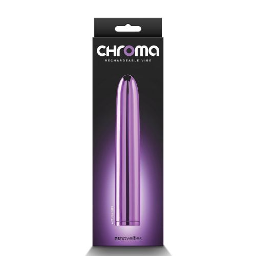 Виготовлений із міцного АБС-пластику, повністю безпечного для тіла та не містить фталатів. Підходить для використання з будь-якими видами лубрикантів. Перезаряджається за 120 хвилин і забезпечує до 60 хвилин безперервного задоволення. Завдяки ступеню водонепроникності IPX7, іграшку можна сміливо брати з собою в душ або ванну. Вібратор класичний вагінальний фіолетовий NS Novelties Chroma створений для того, щоб задовольнити найпотаємніші бажання та додати яскравих фарб у ваше інтимне життя.