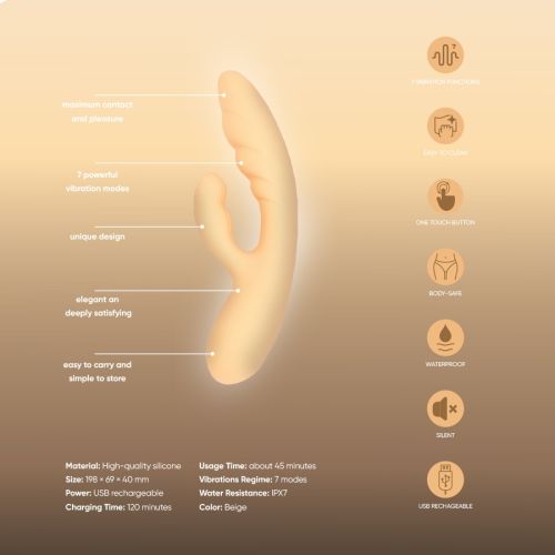 Відкрийте для себе світ безлічі оргазмічних можливостей із цим чудовим вібратором-кроликом! Якщо ви шукаєте інтенсивну насолоду та приголомшливі відчуття, то він стане вірним провідником у подорожі до сексуальної гармонії.