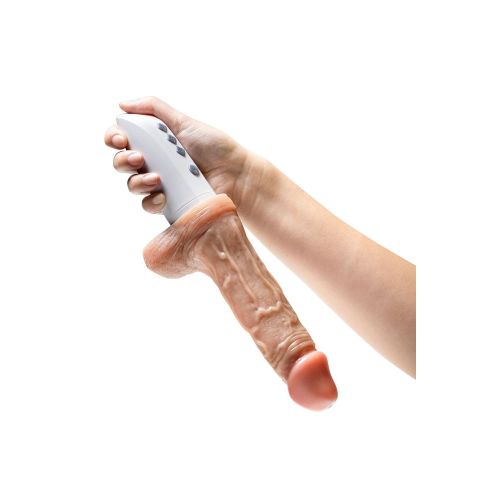 Вібратор Пульсатор реалістичний на підставці із присоскою з функцією нагрівання та пультом керування тілесного кольору Blush Dr. Skin Dr. Hammer
