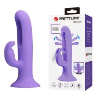 Вібратор 3 в 1 на присосці для стимуляції точки G та клітора з відростком вушками бузкового кольору Lybaile Pretty Love KILLMOULIS
