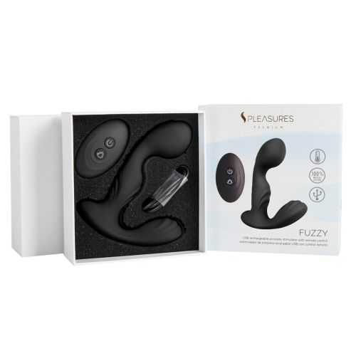 Вібромасажер простати з рельєфом і функцією нагріву з пультом управління чорний S Pleasures Premium FUZZY