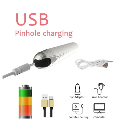 Мініатюрна та дуже потужна віброкуля, яка манить до нових експериментів. Її стильний дизайн і легкість використання роблять її незамінним аксесуаром у вашій косметичці. Виконана з якісного пластику у срібному кольорі. Незвичайний м'яко рифлений рельєф додає гостроти відчуттям під час стимуляції. Вона стане незамінним помічником під час прелюдії, статевого акту з партнером або у грі solo. Внизу на корпусі іграшки розміщено одну кнопку. Затисніть кнопку на 3 секунди та відчуєте потужний потік вібрації. Для перемикання вібрації клацніть на цю кнопку. Щоб вимкнути, натисніть кнопку на 3 секунди. Заряджайте через USB зарядку, яка йде в комплекті. Матеріал: ABC пластик Колір: срібло Вібрація: 10 режимів Довжина: 81 мм Діаметр: 20 мм Зарядка: USB комплект Упаковка: коробка