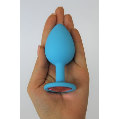 Анальна пробка Sexy Friend голуба з рожевим кристалом L 9,5 см D 4 см