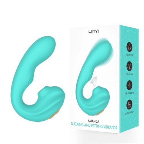 Подвійний вібратор пульсатор вагінальний для точки G та з вакуумною стимуляцією клітора бірюзового кольору Winyi WY0661 Amada