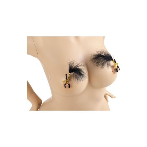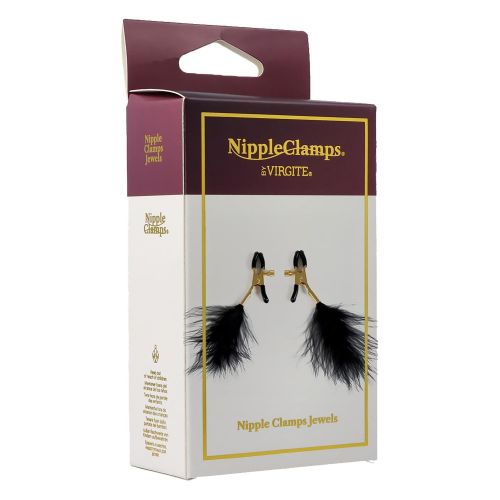 Затискачі для сосків з пір'ям золотисто-чорні DS Fetish Virgite Nipple Clamps