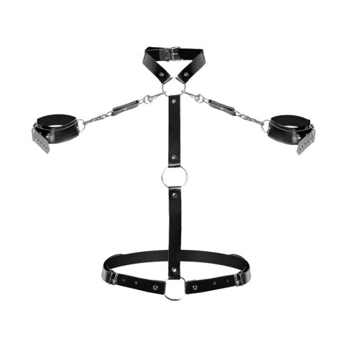 Жіноча портупея із наручниками зі штучної шкіри чорна Art of Sex Ursula розміри XS-2XL