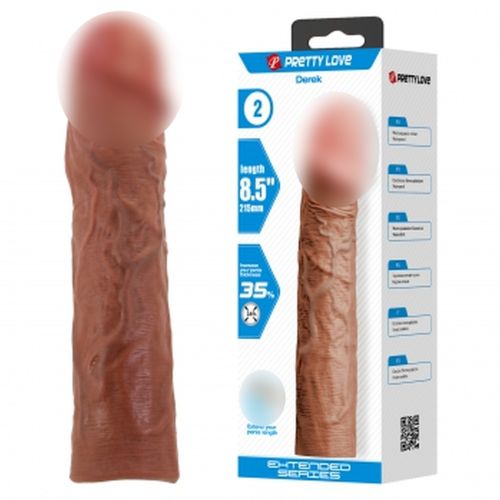 Удлиняющая насадка презерватив на член реалистичная коричневая Lybaile Pretty Love Derek