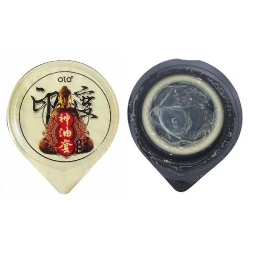 Ультратонкие презервативы с гиалуроновой кислотой пролонгирующим эффектом и точечной текстурой OLO GOLD Indian god oil 1 штука