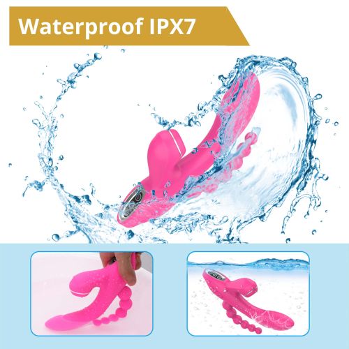 Вибратор 3в1 Вагинальный для точки G с вакуумным отростком для клитора и анальным отростком розового цвета Erospace Sweet Play Sucking Vibrator With Anal Beads модель A3