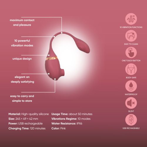 Один из главных плюсов – это многофункциональность. Вы можете выбрать интенсивность вакуума и вибрации в хвостике, чтобы настроить идеальные параметры под свои желания. Это устройство станет идеальным партнером для разнообразных интимных моментов, как одиночных, так и в паре. Игрушка имеет 7 различных вариаций волновой стимуляции и 10 уровней вибраций в хвостике.