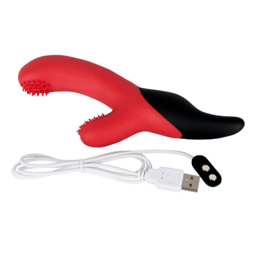 Вибратор вагинальный для точки G с отростком для стимуляции клитора красного цвета Javida
