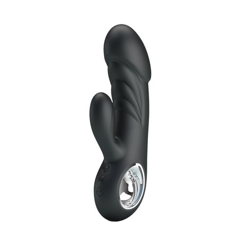Многоскоростной перезаряжаемый вибратор черного цвета компактного размера. Имеет клиторальный стимулятор.