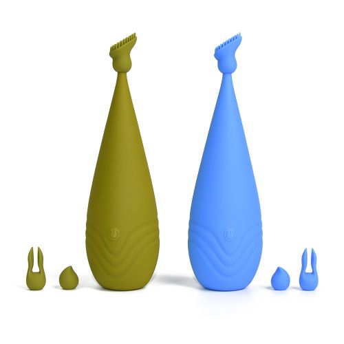 - Особенности: оригинальный дизайн, комплект сменных насадок, эргономичная форма, мощные вибрации