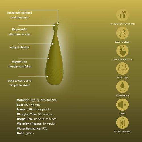 Этот вибратор сразу выделяется своим необычным внешним видом — он напоминает вытянутую каплю, которая создана для того, чтобы повторять естественные изгибы тела и находить самые чувствительные точки. Благодаря продуманной форме он не только удобно ложится в руку, но и легко скользит по коже, превращая каждое прикосновение в игру удовольствия.