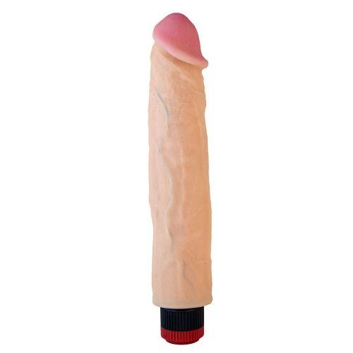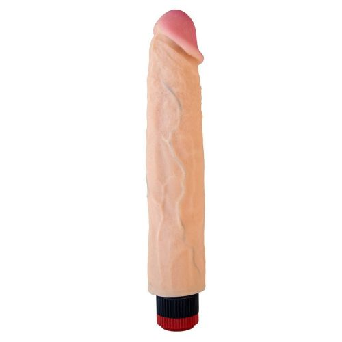 Вибратор телесного цвета. Реалистичный с ярко выраженной головкой. Необычайно приятный, рельефный, выполненный из «Киберкожи» , передающий эффект мягкой реалистичной текстуры кожи, с приятным запахом ванили, не имеет швов. Плавная регулировка вибрации, расположенной в основании.