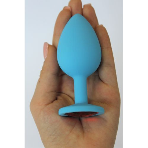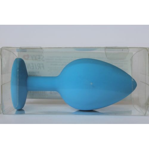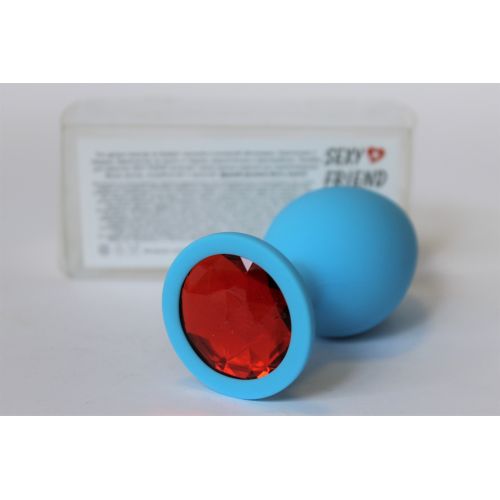 Анальная пробка силиконовая Sexy Friend голубая с красным кристаллом L 9,5 см D 4 см